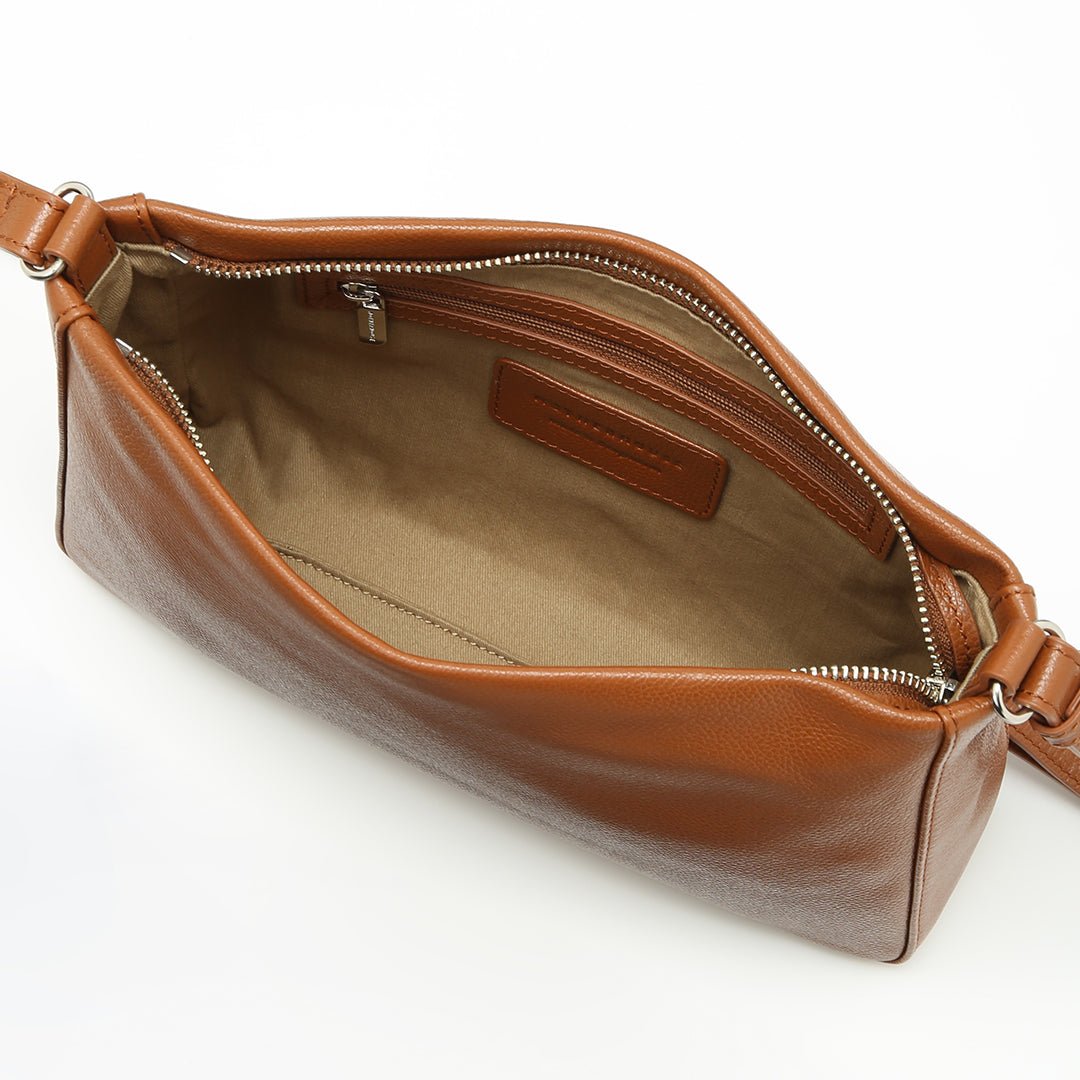 This compact shoulder bag is made of light and supple leather